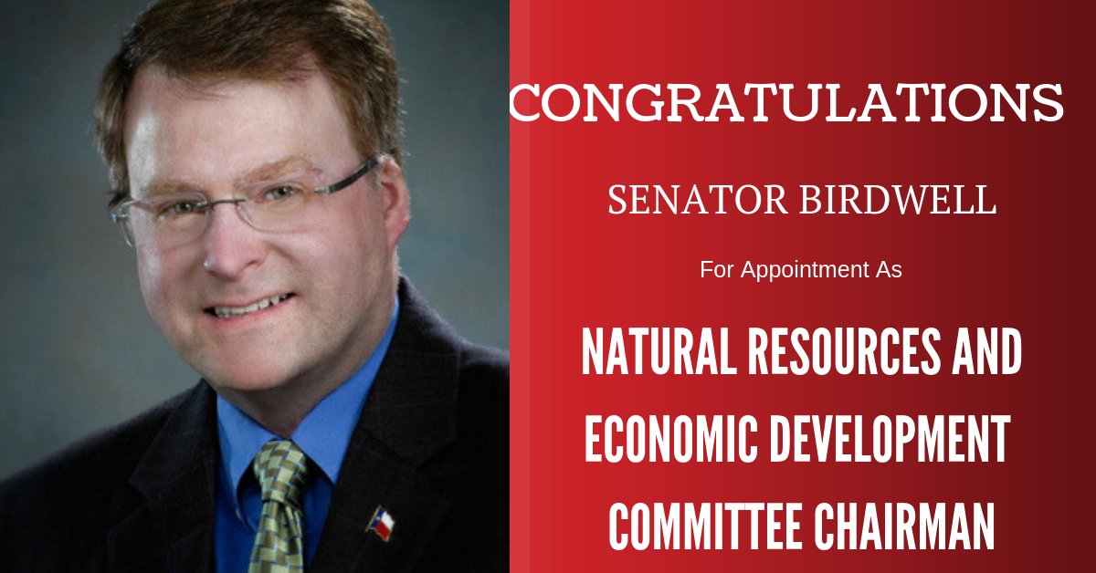 Congratulations @SenatorBirdwell your chairmanship of the Senate Natural Resources and Economic Development Committee! #txlegepic.twitter.com/xARXreCgio