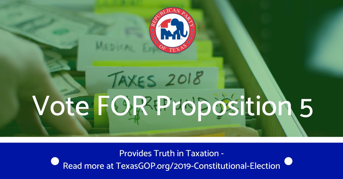 Proposition Five supports RPT’s plank 172 - vote in favor! Read below for a better breakdown https://txgop.us/2pObpcX pic.twitter.com/CoYPWyyvxT
