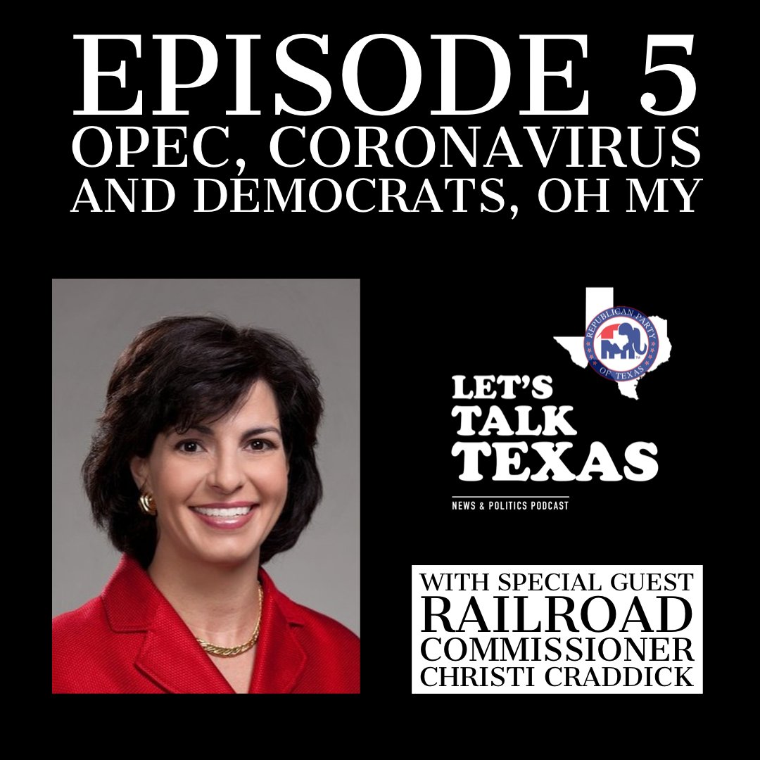 3/4 Ep 5 of #LetsTalkTexas w/ @ChristiCraddick @jamesdickey and @TXyoungGOP on iTunes:https://podcasts.apple.com/us/podcast/lets-talk-texas/id1499135712#episodeGuid=https%3A%2F%2Fanchor.fm%2Fletstalktexas%2Fepisodes%2F5---OPEC--Coronavirus-and-Democrats--Oh-My-ebekc3 …