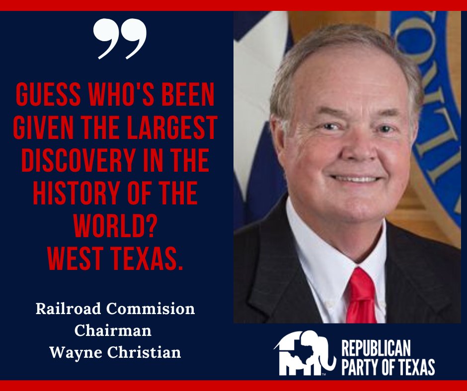 Railroad Commission Chairman @ChristianForTX explained the miracle of West Texas during last week’s Statewide Townhall. Listen now! https://youtu.be/bmG3NeK-9So pic.twitter.com/IVvDHC893V