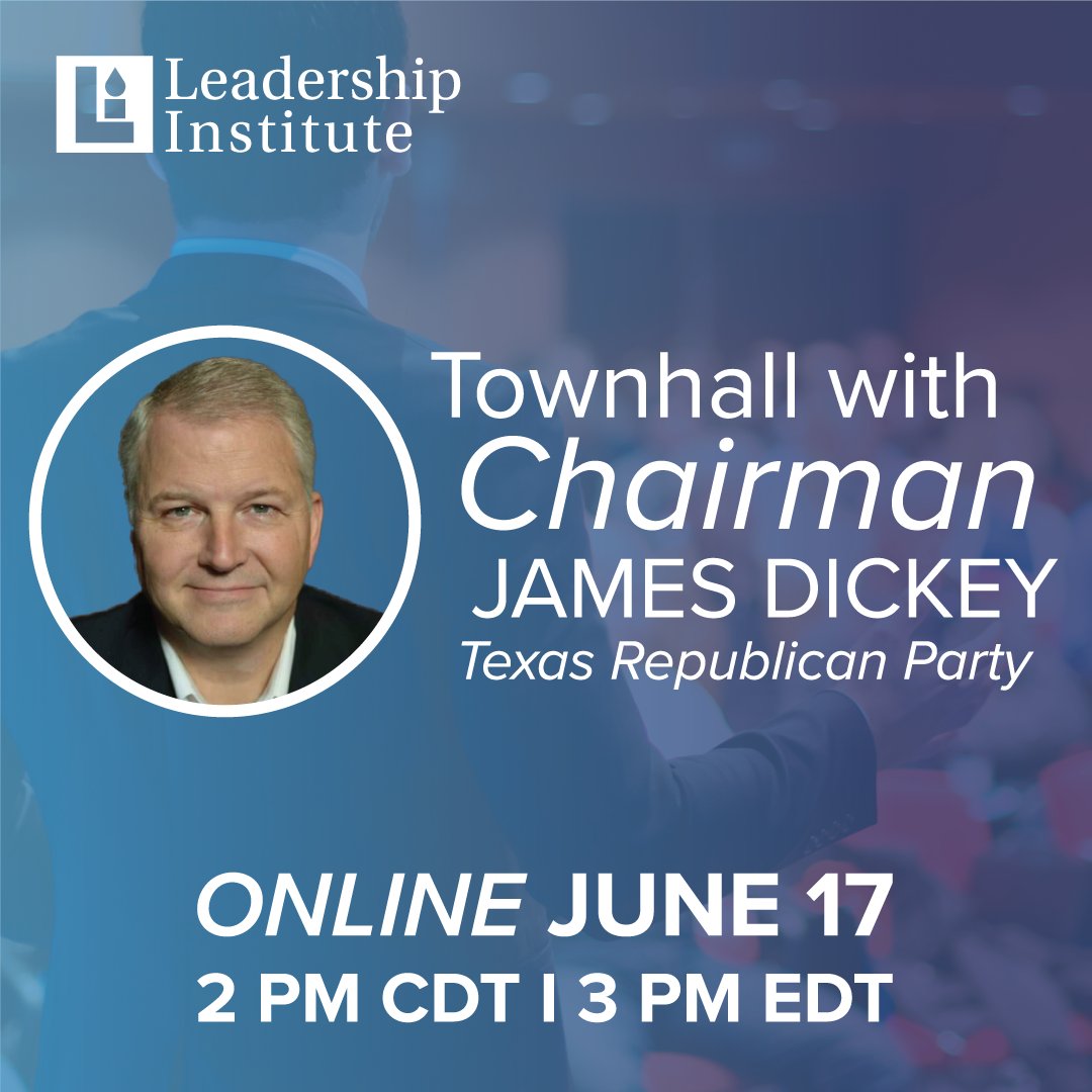 Chairman @jamesdickey will join the Leadership Institute for their Grassroots Town Hall on Wednesday, June 17th at 2:00 pm CT.