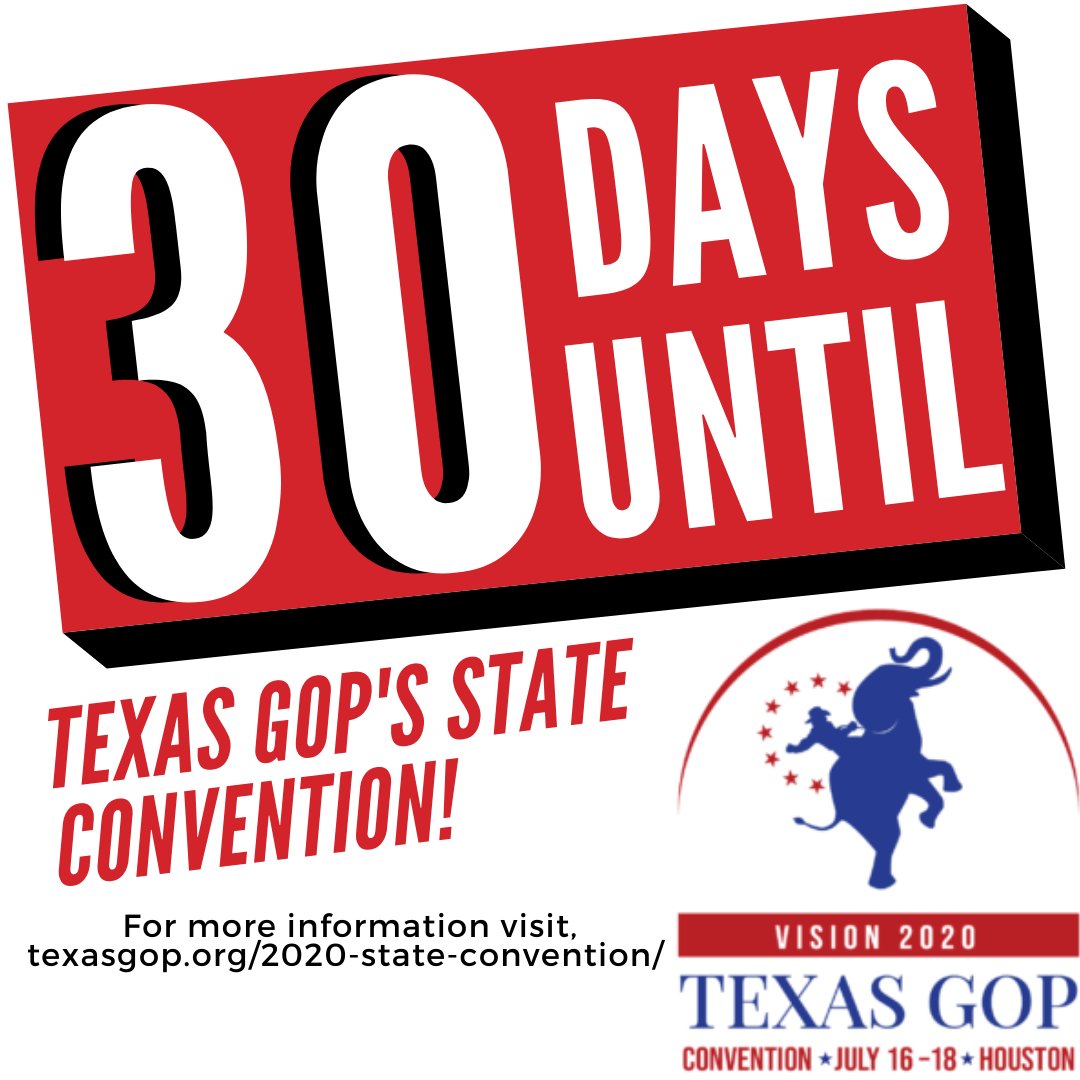 Our Vision 2020 State Convention is in just 30 days! Visit http://www.texasgop.org/2020-state-convention/ … for more information!pic.twitter.com/hg6yO0wrhA