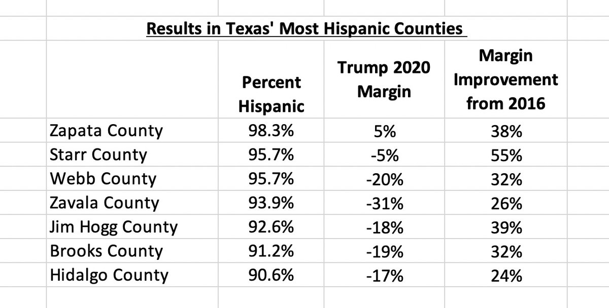 Giancarlo SopoKonto zweryfikowane @GiancarloSopoHere are the election results in TX's most Hispanic counties with the exception of Maverick (pending) Eeach one is either a border county or very close to the US-Mexico border. Trump's margins improved by +20 points in all of them vs. 2016.#ItsNotJustCubans pic.twitter.com/T59SU0n6tVPokaż ten wątek1 odpowiedź 7 podanych dalej 13 polubionych -