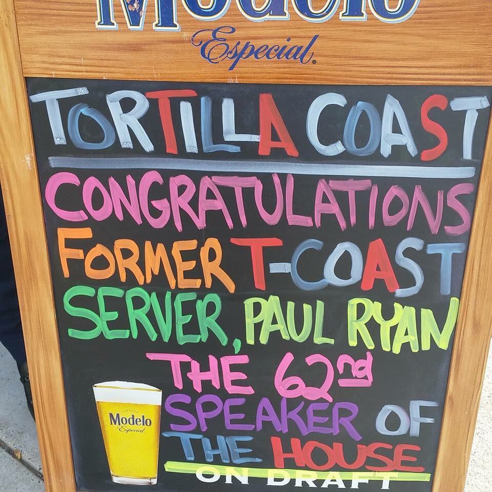 Tortilla Coast server to US Speaker Of The House. The American Dream is alive! #SpeakerRyanpic.twitter.com/Vv9p3ipfgB