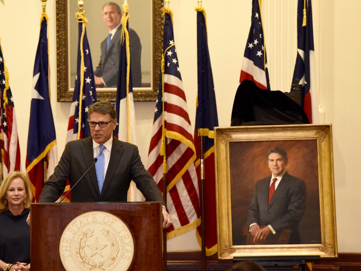 Rick Perry — "a boy from Paint Creek, Texas" — and his new portrait at the Texas Capitol. Photo by @bobphoto #txlege pic.twitter.com/JcXgBhpiYb