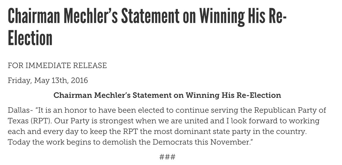 See @tommechler's Statement on winning his re-election here: https://www.texasgop.org/chairman-mechlers-statement-on-winning-his-re-election/ … #UniteToWin2016 #rpt16 #txlegepic.twitter.com/O2BpvA1pV4