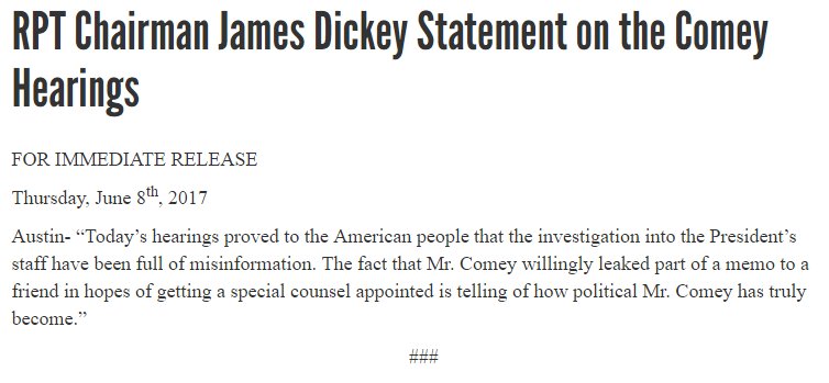 See RPT Chairman @jamesdickey's statement on the #ComeyHearings here: http://bit.ly/2skquCD pic.twitter.com/2n1ihm1wv4