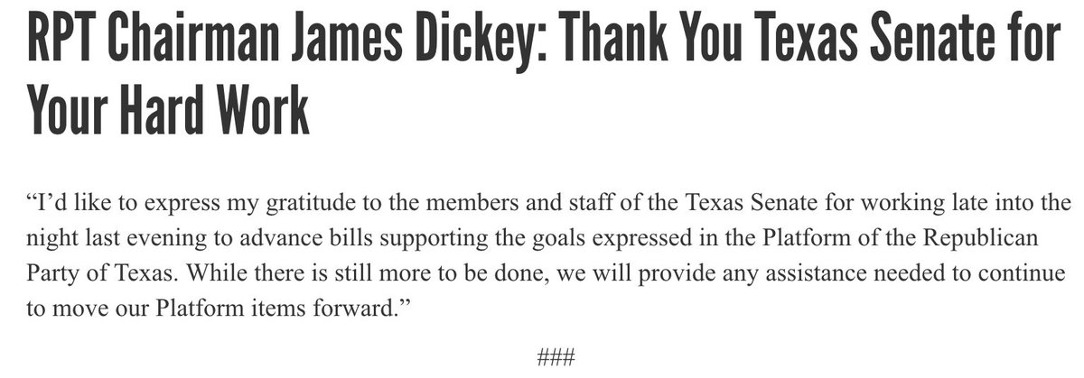 RPT Chairman @jamesdickey: Thank you Texas Senate for Your Hard Work: http://bit.ly/2vJOUEA  #txlege #RPTpic.twitter.com/fz5arUWnog