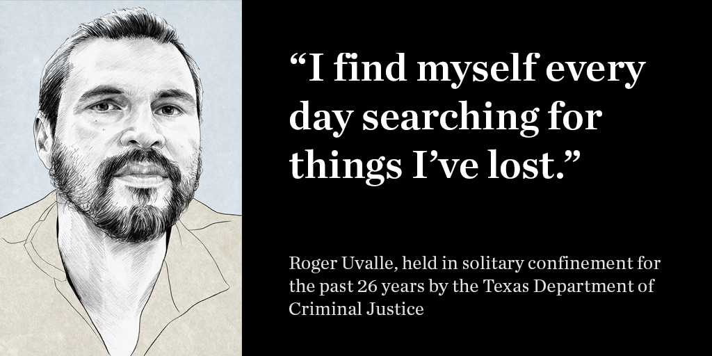 4/ Roger Uvalle says his memory has degraded to the point where he now struggles to keep track of the few personal items he’s allowed to have. He sometimes spends hours turning over his cell looking for stamps, letters, art supplies. https://texasobserver.org/solitary-confinement-texas/ …pic.twitter.com/arJSmSdkWT