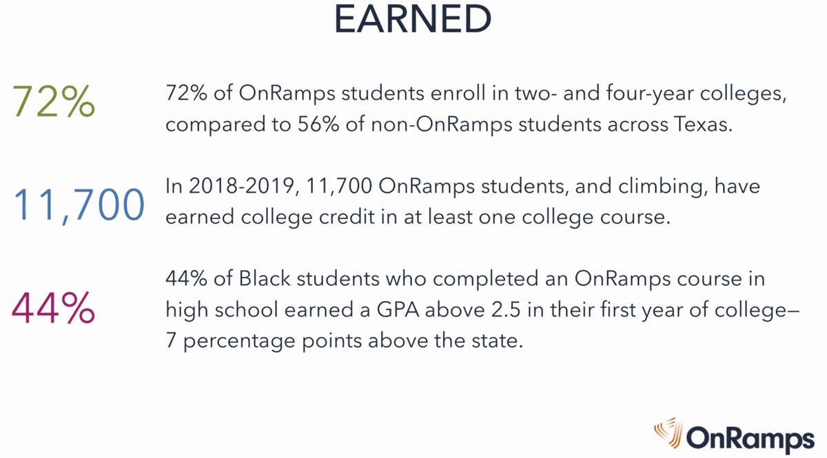 from our webinar on Earning #CollegeCredit in high school... Did you know that@TexasOnRamps students have a higher level of college enrollment than non?#FirstGen#BetterMakeRoompic.twitter.com/IQFBMtnXYA