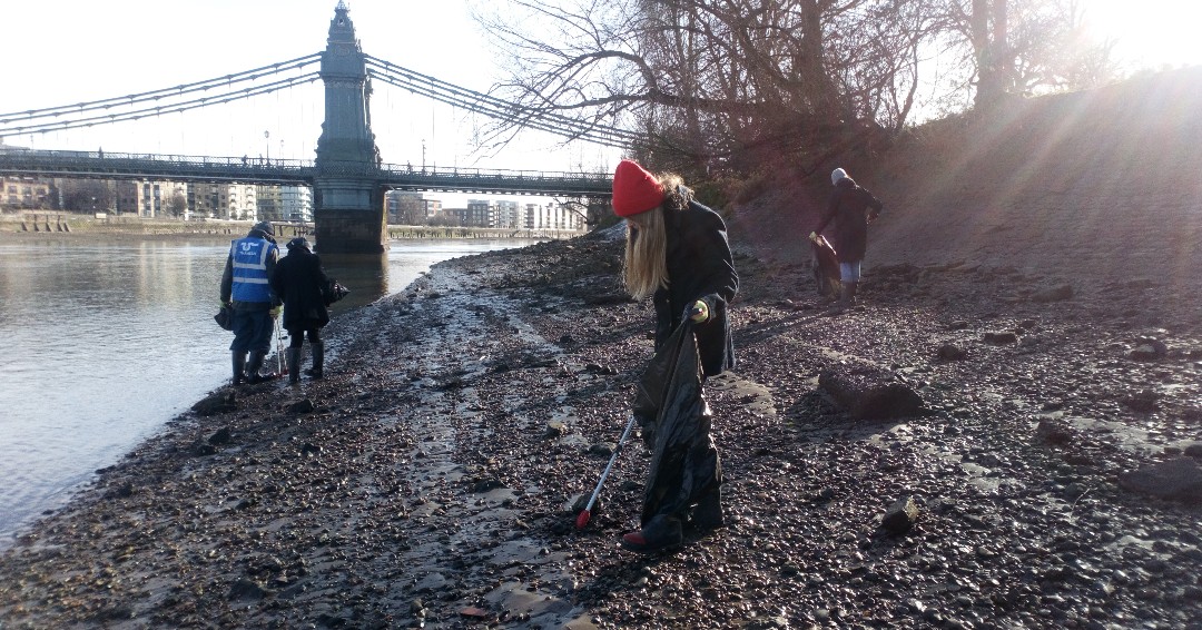 #PlanetHeist, we teamed up with waterway charity@thames21 to clean up the river banks in Hammersmith. Increasingly, much of the waste found here is plastic: bottles, cups, lids, sweet wrappers, cotton buds and wet wipes.pic.twitter.com/Zl3qA4BoIX – mjesto: Hammersmith Bridge