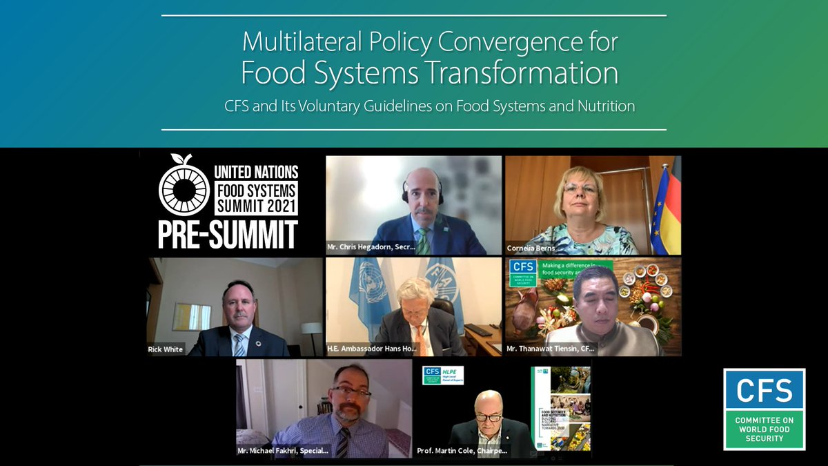 #CFSHighlights | The CFS session at the#UNFSS2021 Pre-Summit focused on multilateral policy convergence for#FoodSystems transformation & saw the launch of the CFS Digital Platform on the VGs on#FoodSystems &#Nutrition More info, incl the recording