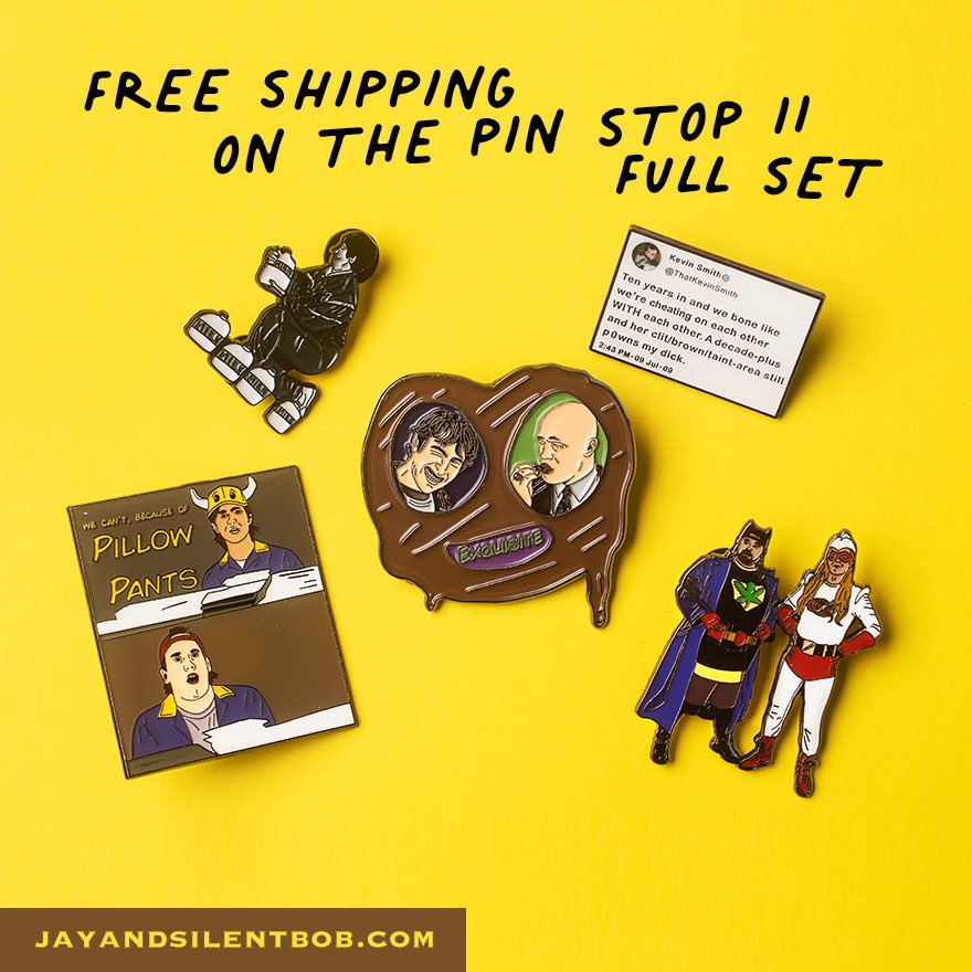 @toddxtizzle presents 5 new designs, including the Tweet, Elias’s Pillow Pants moment, & my Mom as the Milk Maid! Pick them up at@The_SecretStash or the online store: https://jayandsilentbob.com/products/pin-stop-drop-2-full-set …pic.twitter.com/s4Noisf0ij