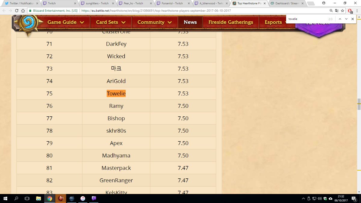 I just checked the September arena leaderboards and I'm on it! 75th place with 7.53 average on EU FeelsAmazingMan https://eu.battle.net/hearthstone/en/blog/21086691/top-hearthstone-players-september-2017-06-10-2017 …pic.twitter.com/CjCzErrwpM