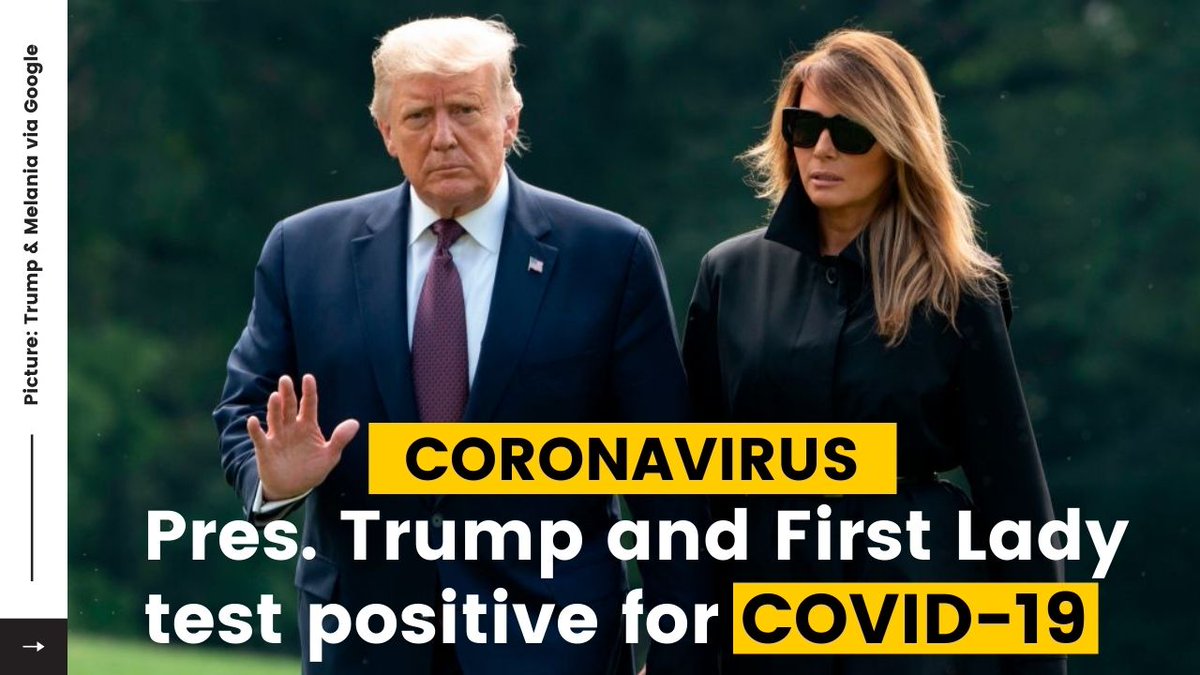 #Trump and the first lady had tested positive for the#COVID19, throwing the nation’s leadership into uncertainty and escalating the crisis posed by a#pandemic that has already killed more than 207,000#Americans and devastated the economy.#africanpress#trumptestpositivepic.twitter.com/G85eePFSBh