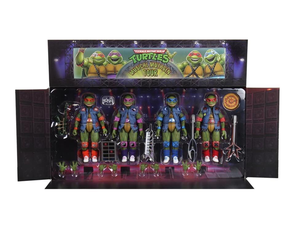 The set is missing Splinter with his skipping stone, and the weird Shredder where his face is uncovered.