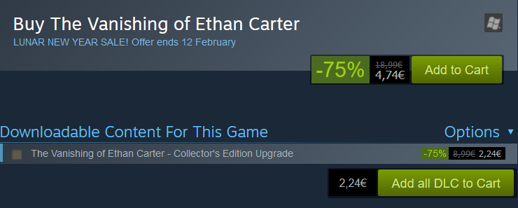 The Vanishing of 75% of the Price of The Vanishing of Ethan Carter.