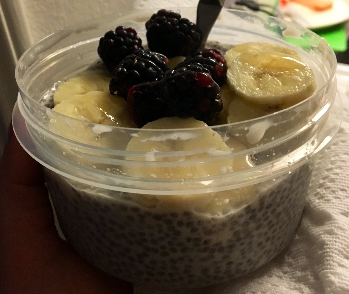 Almond Milk Chia Seed pudding with bananas, blackberries and a tiny hint of honey!pic.twitter.com/vAeX728dYD