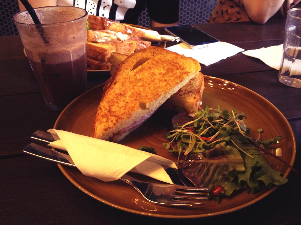 Croque Monsieur with Iced Chocolate #omnomnompic.twitter.com/4D4NIAEawX