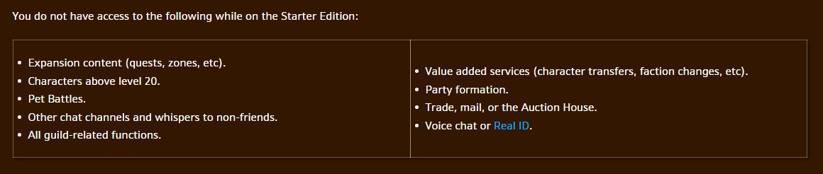 New to WoW? Leveling to 20 for the Hearthstone hero? Take note! https://us.battle.net/support/en/article/world-of-warcraft-starter-edition-account-faq … … #hearthstone #warcraftpic.twitter.com/uqcjhyN06o