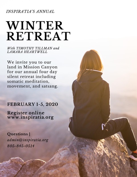 Our winter retreat provides us with an extended time to turn inward & be nourished by the solace of the season. Through somatic meditation, movement, & nature practice we will settle, open & renew our sense of connection & purpose. Learn more http://www.inspiratia.org/winter-retreat