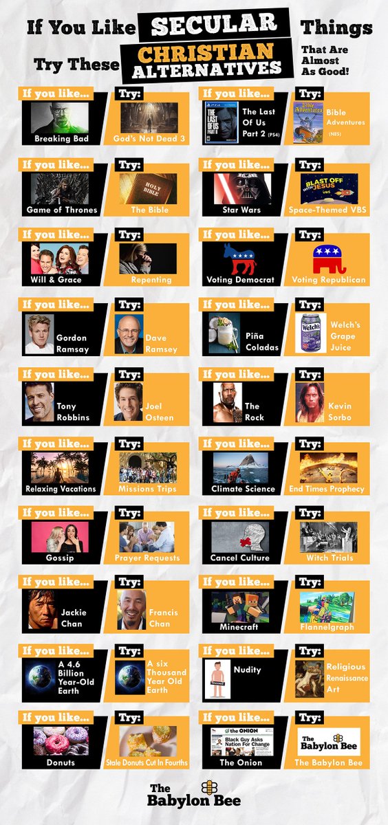 If You Like Secular Things, Try These Christian Alternatives That Are Almost As Goodpic.twitter.com/sR2cbTHkSp