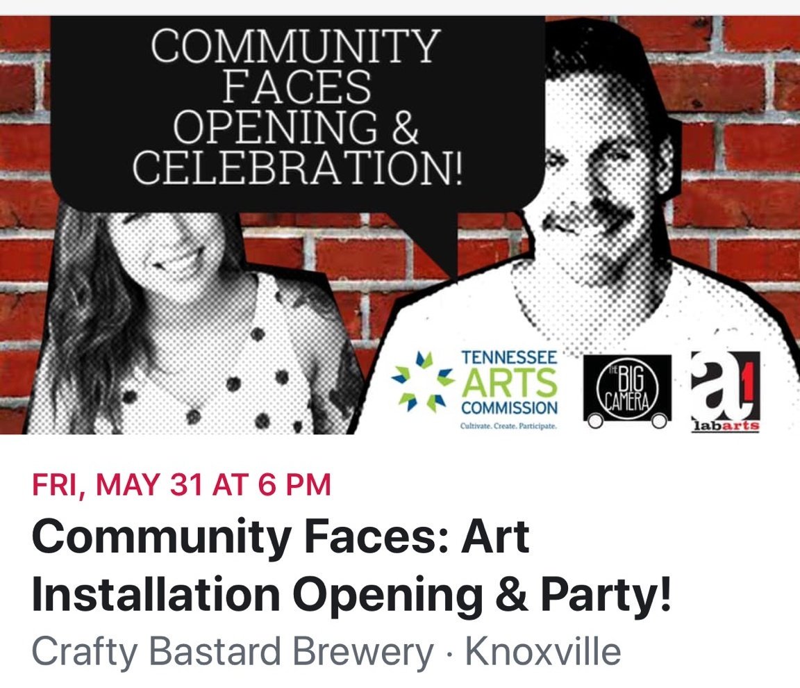 Knoxville's all abuzz with anticipation for tomorrow's debut of the Community Faces art installation! Come by Crafty Bastard Brewery at 6 PM, and see what's got the whole town talking!