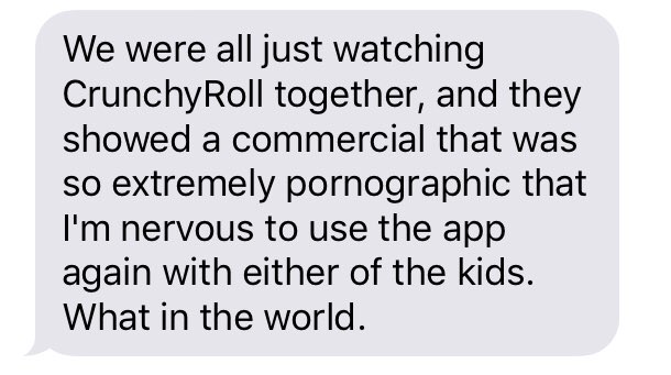 We were watching MHA with the kids and there were some...questionable ads coming through that I wasn't fond of. I wouldn't care for me, but I wish there was a filter when we're watching with them.