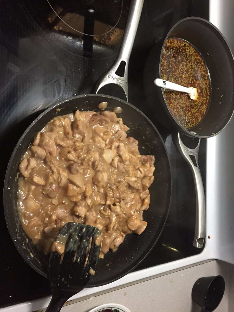 As I eat my herb wrap, @MrsBrometheus is preparing 4 pounds of homemade garlic chicken.