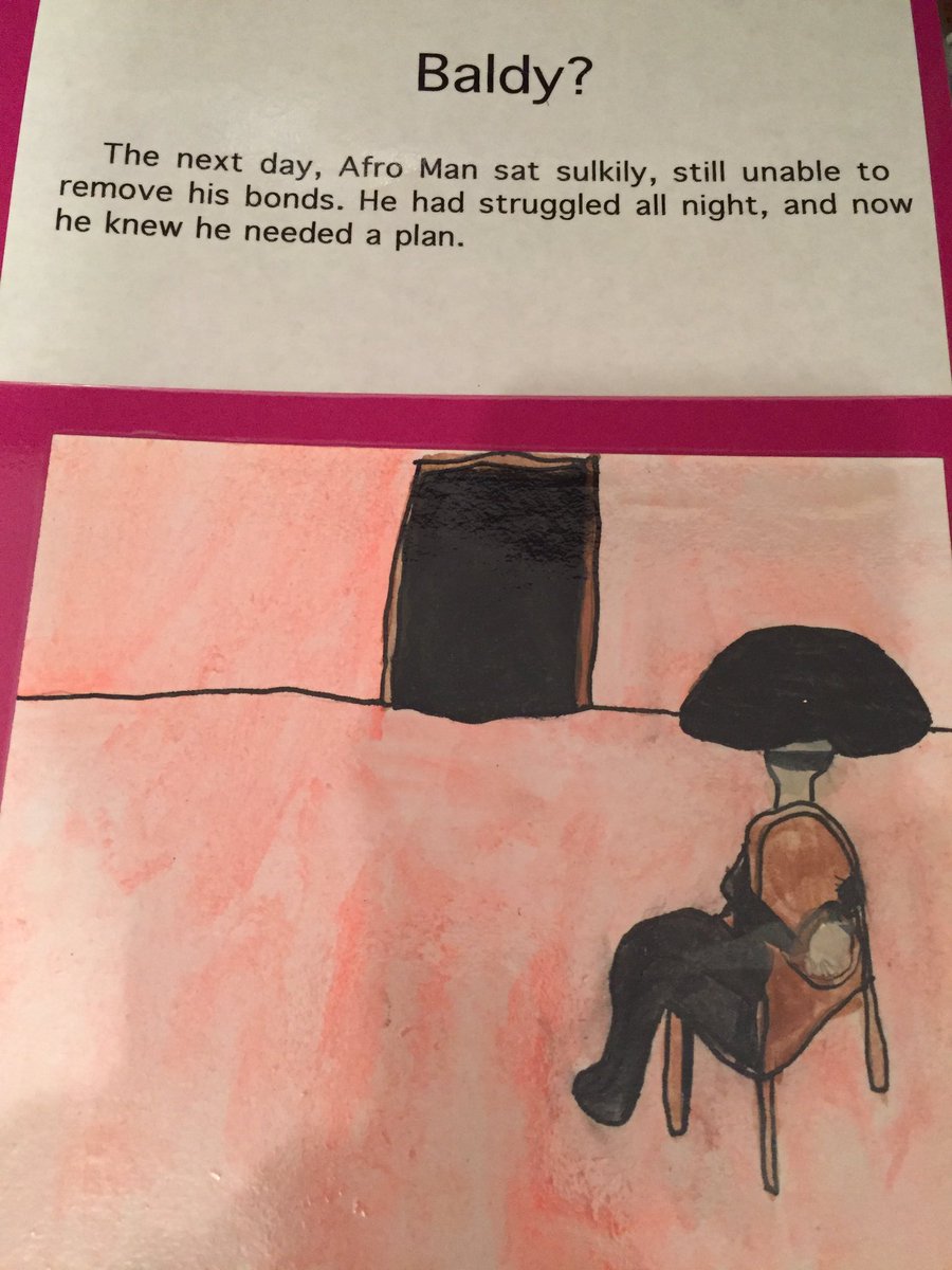 When I was 12 years old I wrote and illustrated my first book. It was a superhero action story about Afro Man, a hero with prehensile hair who battles a renegade barber named Mr. Bar Ber. Naturally, the villain dies by falling into a vat of hairspray after a snappy one-liner.pic.twitter.com/w91yM2LzSO