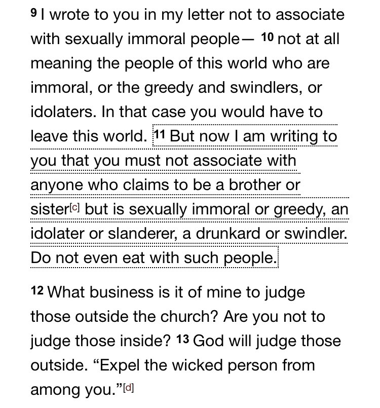 “No Christian is ever allowed to talk about any other Christian sinning” is one of the worst takes from the modern simpering church. Folks need to read Corinthians 5:9-13.pic.twitter.com/vTp3zoi4L6