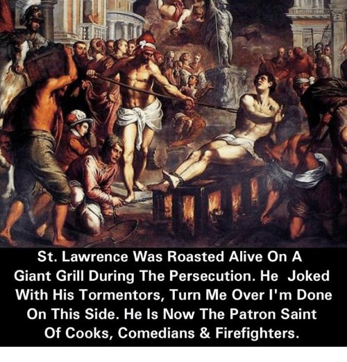 even better is the story of why he ended up getting martyred too. He was a deacon, so being in charge of the financial charity of the early church, was brought before a Roman magistrate who said he would let Lawrence go free if he would bring him the riches of the church -