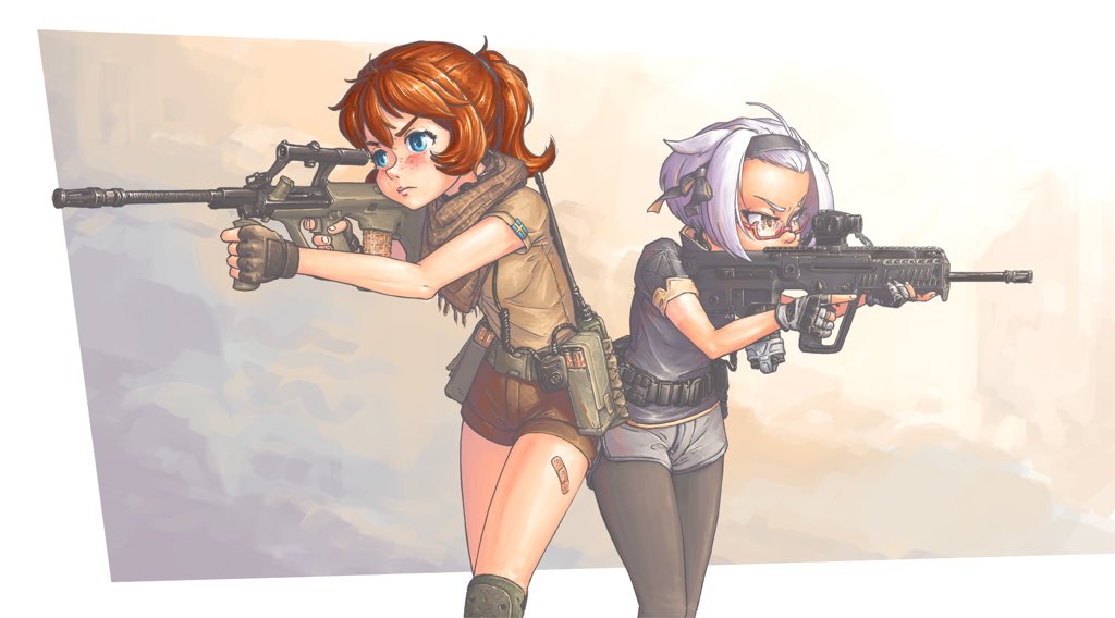 Borrowing Brooke and X95 from @HarxMLeth and @On_TheBounce respectively. I’ve actually been meaning to draw these two for ages and, since they both do the tacticute thing and wield bullpups... seemed logical. Higher res version on dA: http://fav.me/ddrhxyq pic.twitter.com/wSUX4gfnH3