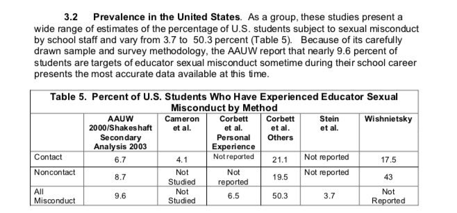 The most comprehensive study ever undertaken on the topic shows 9.6% of students are victims of educator sexual misconduct, but if you’re okay with that.