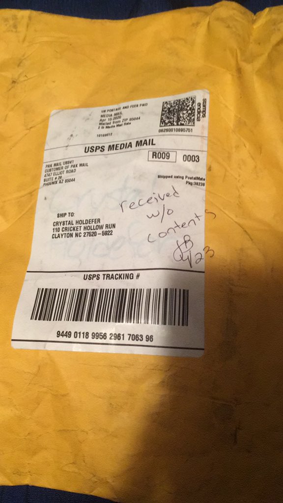 I sent my editor @themnekochan a signed copy of WIEDERGEBURT 3, but the package arrived via @USPS torn open and labeled "received w/o contents," meaning someone stole the book in transit because who spends money sending an empty package. A little help @USPSHelp?pic.twitter.com/Vi2frG46kO