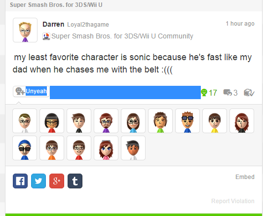 "my least favorite character is sonic because hes fast like my dad when he chases me with the belt" (via