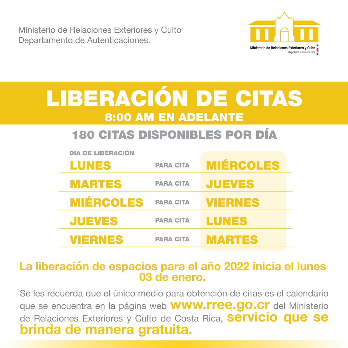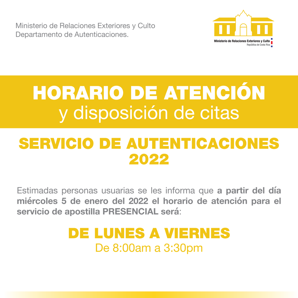 El Departamento de #Autenticaciones les informa sobre el horario de atención y disposición de citas en el servicio de apostilla para el año 2022.