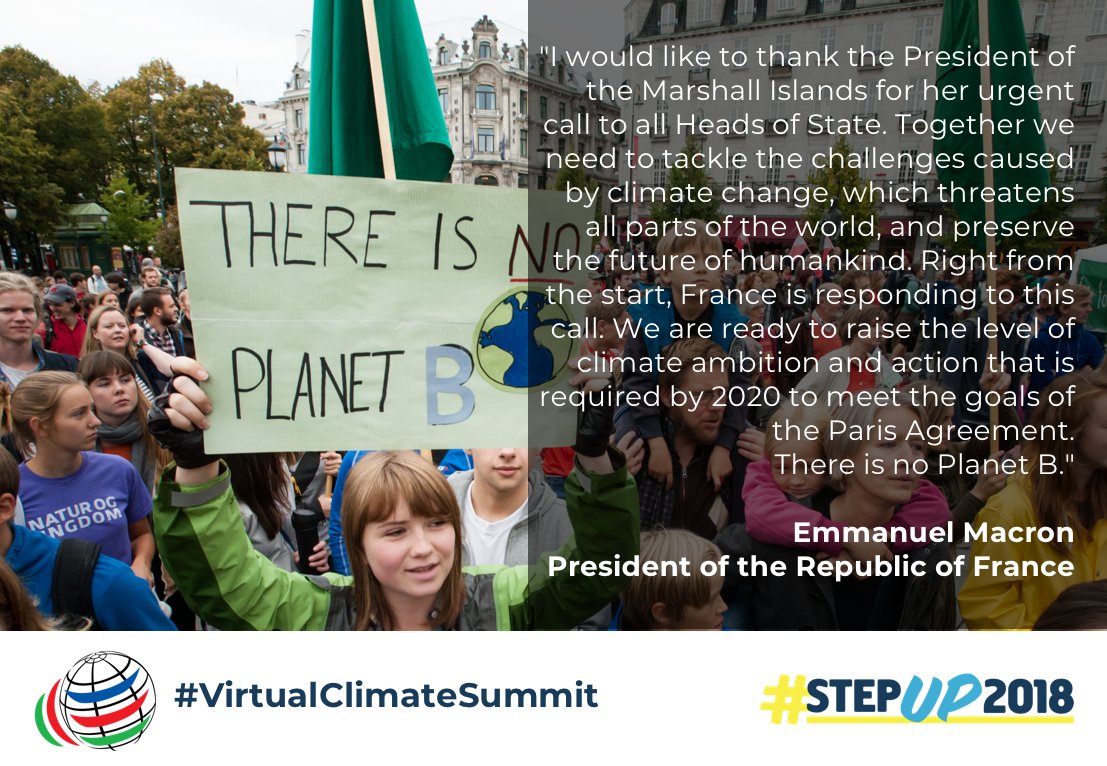 @TheCVF are leading from the front again. Around 50 vulnerable countries just announced the first #VirtualClimateSummit to raise climate ambition @EmmanuelMacron on the summit announcement : There is no Planet B #StepUp2018 #1o5Cpic.twitter.com/EekcF6e06q