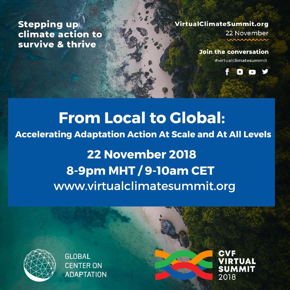 What actions are needed to advance adaptation & how to respond to #climatechange coherently linking communities to national & global iniatives? Find out @ http://www.virtualclimatesummit.org 8:00 AM - 9:00 AM GMT (22 Nov 2018) #CVFSummitPanel @GCAdaptation @ICCCAD @CANIntl @TheCVF @CANIntlpic.twitter.com/OaI70mwRwL