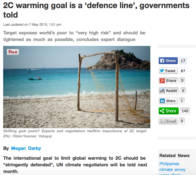 2C #climate goal = ‘defence line’, governments told @TheCVF says strengthen to 1.5C http://rtcc.org/2015/05/06/2c-warming-goal-is-a-defence-line-governments-told/#sthash.btiWTrSA.dpuf …pic.twitter.com/Xnra5Sheoc