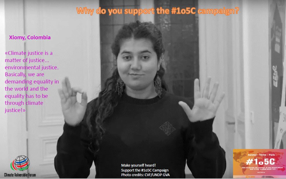 Xiomy #COY11 participant lifting the youth voice for the #CVF #1o5C campaign for #COP21 http://thecvf.org/ pic.twitter.com/fb62NbslUY
