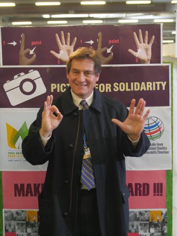 Belaustegui from #Argentina put hands up in the air for #1o5C with @TheCVF http://1o5C.org #COP21pic.twitter.com/okdRMuD8G4