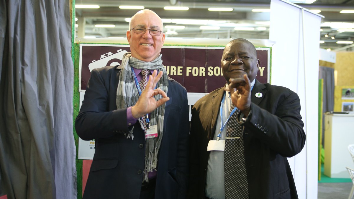 Jose Manuel from #GuineaEcuatorial put hands up in the air for #1o5C with @TheCVF http://1o5C.org #COP21pic.twitter.com/VZU7c7hbkG