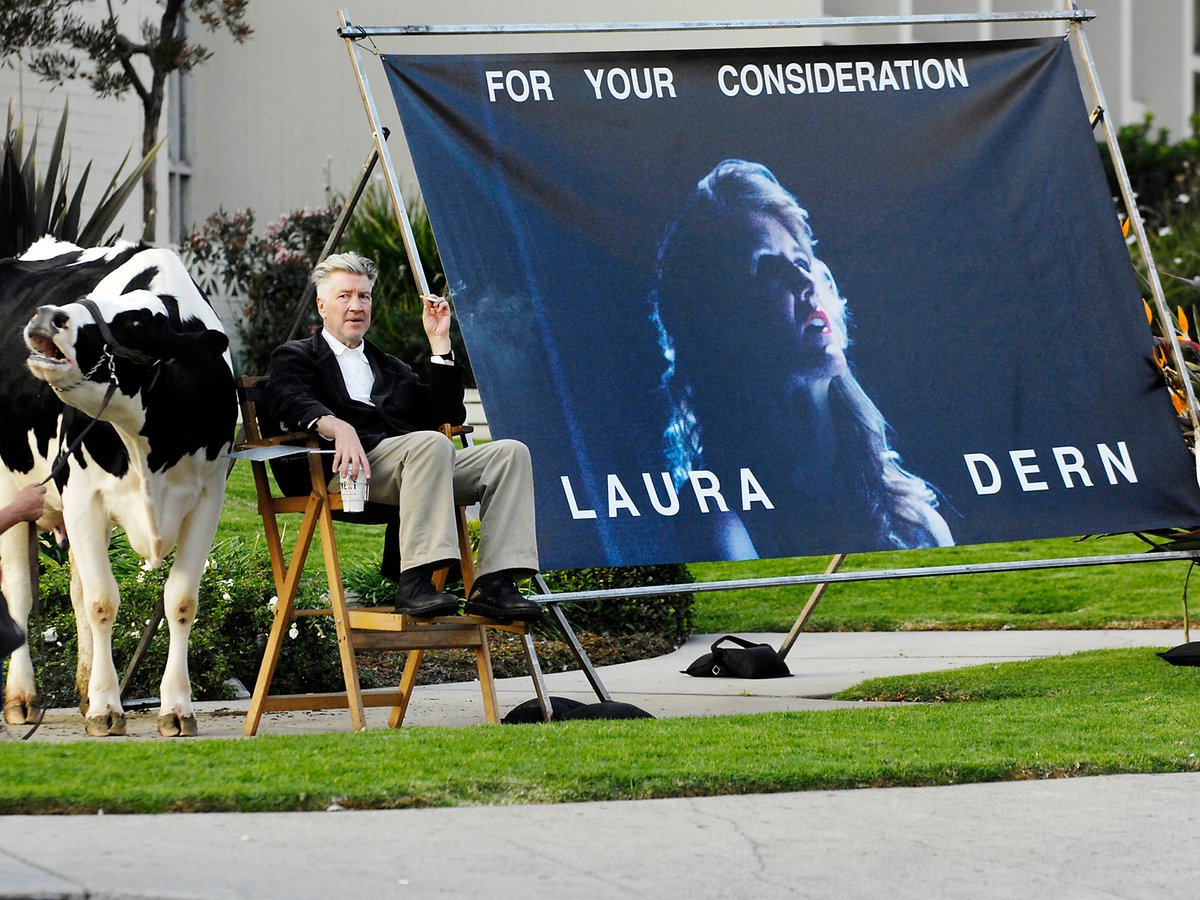 Sure you love Laura Dern, but do you love her enough to sit on the corner with a billboard & a live cow the way David Lynch did to promote her Inland Empire performance for the Oscar in 2006?pic.twitter.com/M3Omuj7CZP