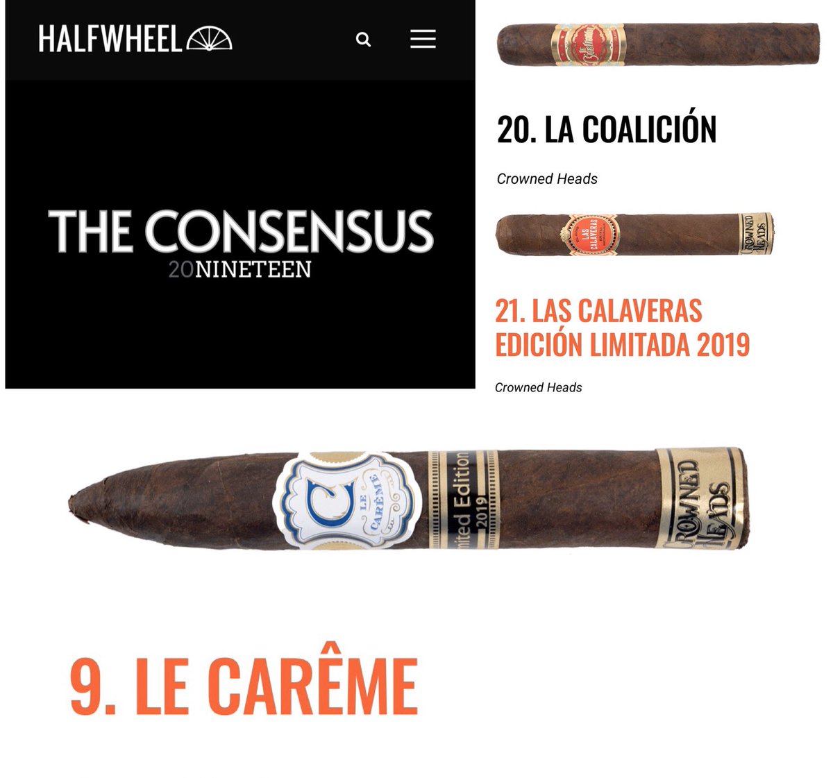 515 cigars from 47 lists from 39 publications were compiled—Crowned Heads had 3 cigars among the Top 25 of The Consensus 2019. This is as close to a “People’s Choice Award” as our industry gets...and I am subtly thumbing my nose at “the Academy/Oscars”of our industry right now.pic.twitter.com/Rx6ImDkDeo