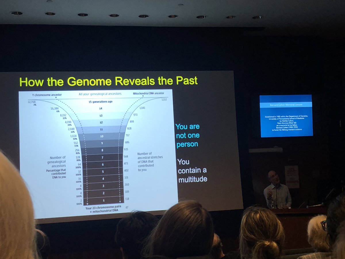 If you go back 15 generations, only about 3% of your ancestors contributed DNA to you! From David Reich’s Cohen lecture at