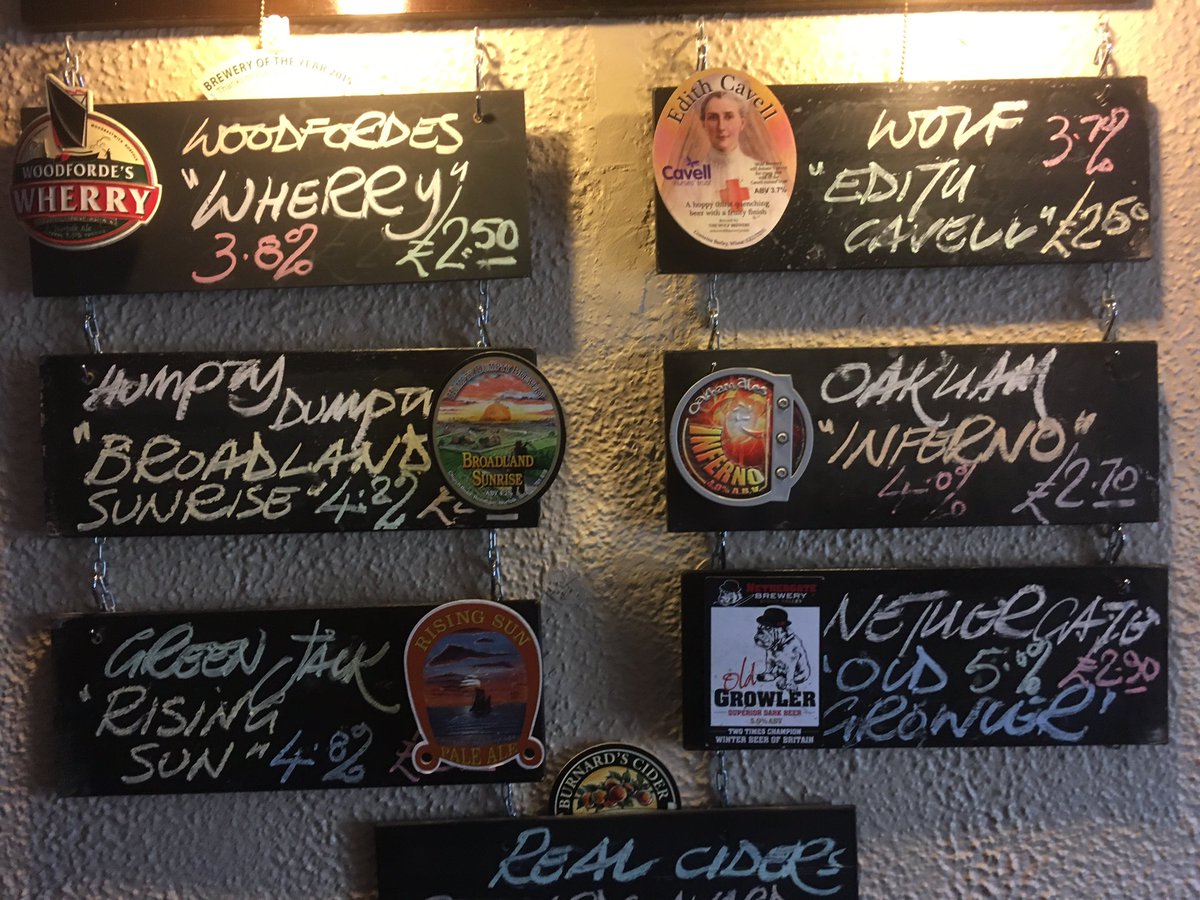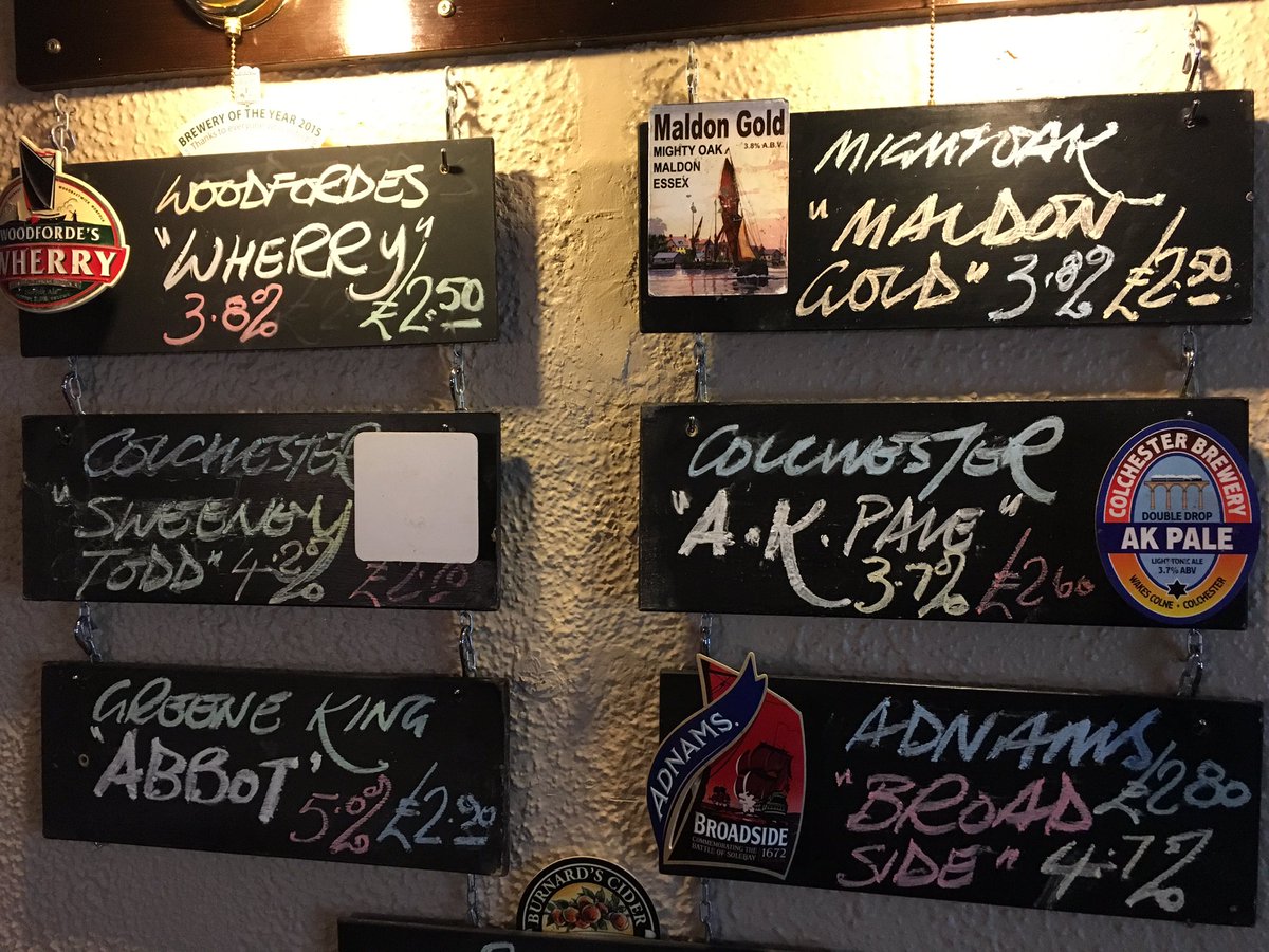 @Colchbrewerycat 'AK Pale' & 'Sweeny Todd'@Adnams 'Broadside' &@greeneking 'Abbot' - open in 10mins