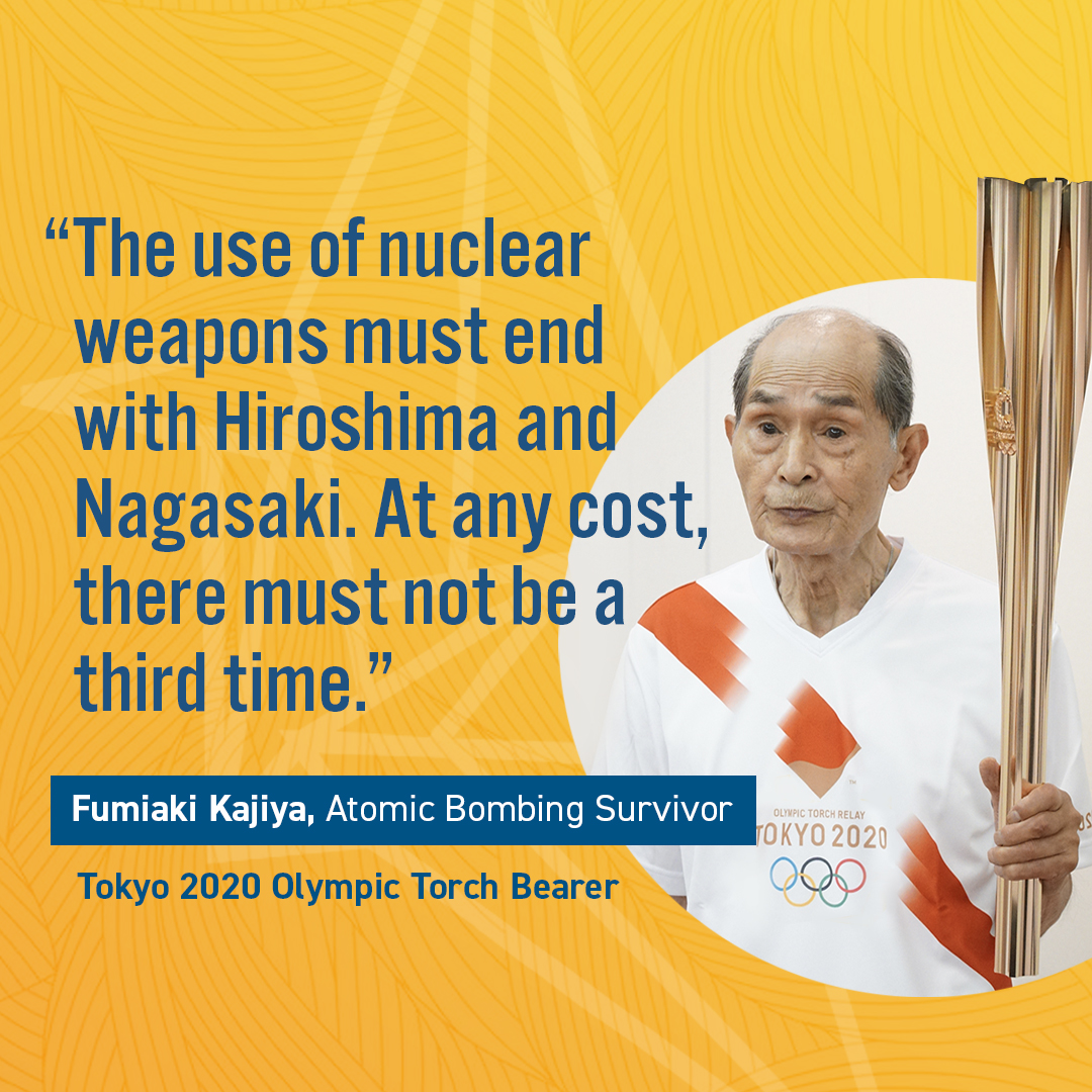 We wish to leave you with the words of Fumiaki Kajiya. He was six years old when he survived the atomic bombing of Hiroshima. This year, he carried the Olympic Torch for the #Tokyo2020 Olympic Games. https://twitter.com/PHiroshimapref/status/1418133720263966723 … #CranesForOurFuture (4/4)
