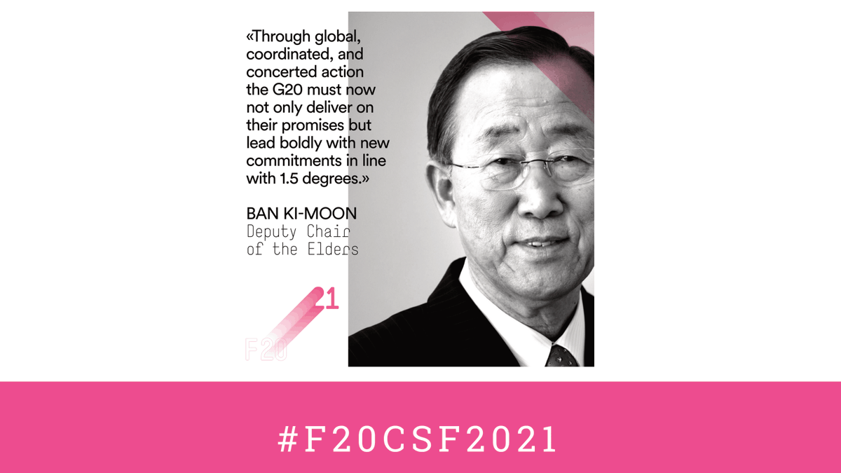 Today, from 10:00 CEST, the @f20platform’s 2021 Climate Solutions Forum will begin. Ban Ki-moon will share a high-level keynote on the urgent need for bold #G20 action on the #ClimateCrisis.