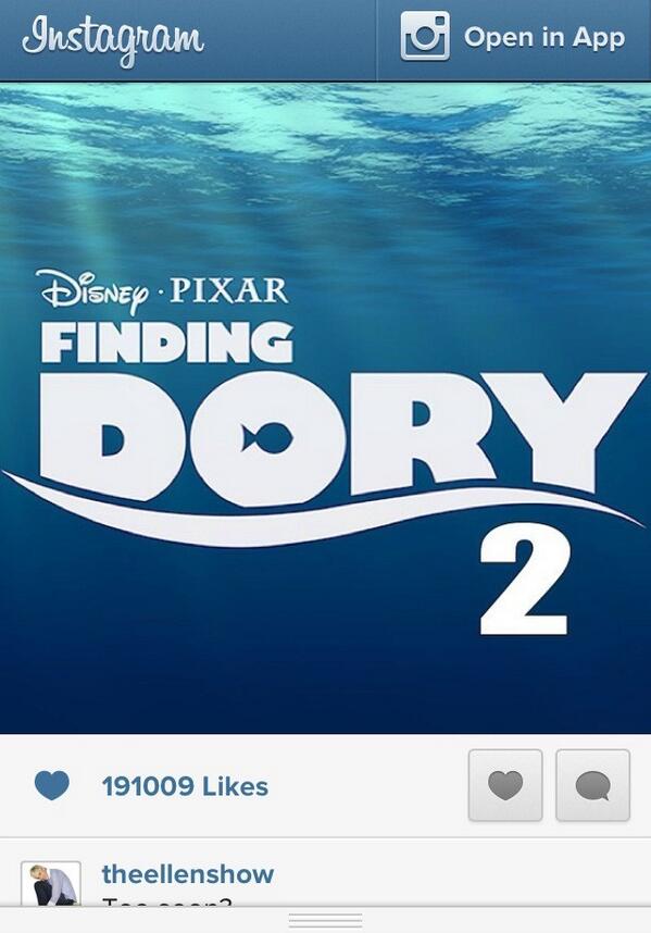 @TheEllenShow 2015! We had to wait so long for Finding Dory! I say you should be making a fifth sequel to Finding Nemo! Don't u agree!Thanks. Twitter will use this to make your timeline better. UndoUndo